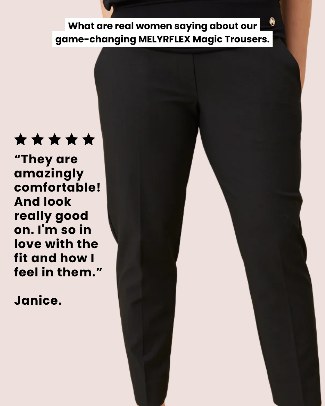 - Choose “Try Before You Buy” at checkout. Available on every full-price MELYRFLEX trouser.