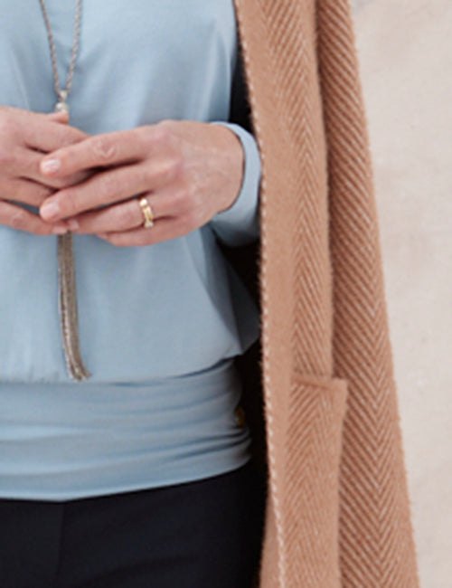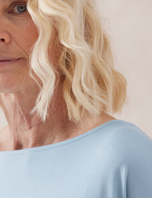 Nuestra heroína, Aimee, fue el punto de partida de nuestra colección de tops de jersey de lujo cuidadosamente seleccionados. Este top de escote recto es un clásico relajado y atemporal con mangas que se funden suavemente en una manga murciélago ponible. La banda profunda Melyr que se ajusta a la cadera está diseñada para favorecer y dar forma en los lugares correctos, al mismo tiempo que agrega definición y crea una silueta drapeada elegante. Aimee es un top de jersey de lujo para usar con jeans y pantalones deportivos. Cuando necesitemos estar más elegantes y arregladas, combina esta pieza con nuestros pantalones palazzo elásticos Amalfi y accesorios elegantes. Cuatro estaciones en una sola prenda.