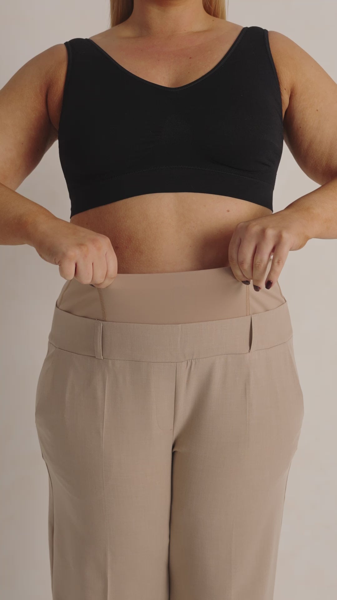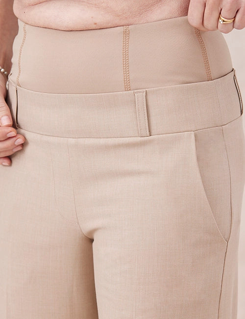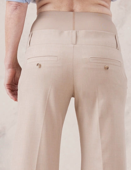 Nuestra exclusiva banda elástica en 4 direcciones MELYRFLEX está diseñada para eliminar las cinturas restrictivas e implacables. La comodidad de la ropa deportiva se combina con la sastrería femenina en este pantalón de cintura alta de corte experto. Un héroe entre tallas.