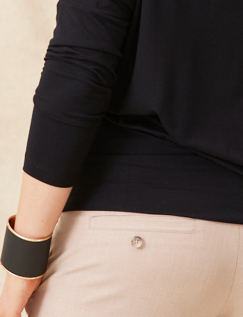 To extend the life of your Black Amalfi stretch palazzo trousers we recommend hand washing. Machine washable at 30 degrees for the time-strapped.