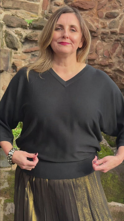 ¿Quién no necesita el jersey negro perfecto? Harper de MELYR es suave como la seda, confeccionado con 100 % Tencel de origen responsable y con un tacto deliciosamente suave. El diseño de alas de murciélago, que favorece a todos, es una silueta característica de MELYR, un básico de armario atemporal que se usa una y otra vez y que se adapta a las curvas sin un ápice de adherencia. Harper presenta un elegante escote en pico alto, mangas ¾ kimono sueltas con delicados detalles de pointelle y un dobladillo acanalado profundo que define la cadera. Un brillo sutil eleva y añade un toque de glamour a esta prenda de punto discreta y favorecedora, una pieza estrella para todas las estaciones que personifica la moda moderna y para siempre.