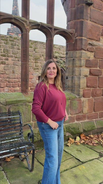 Aimee Relaxed Batwing Top - Burgundy