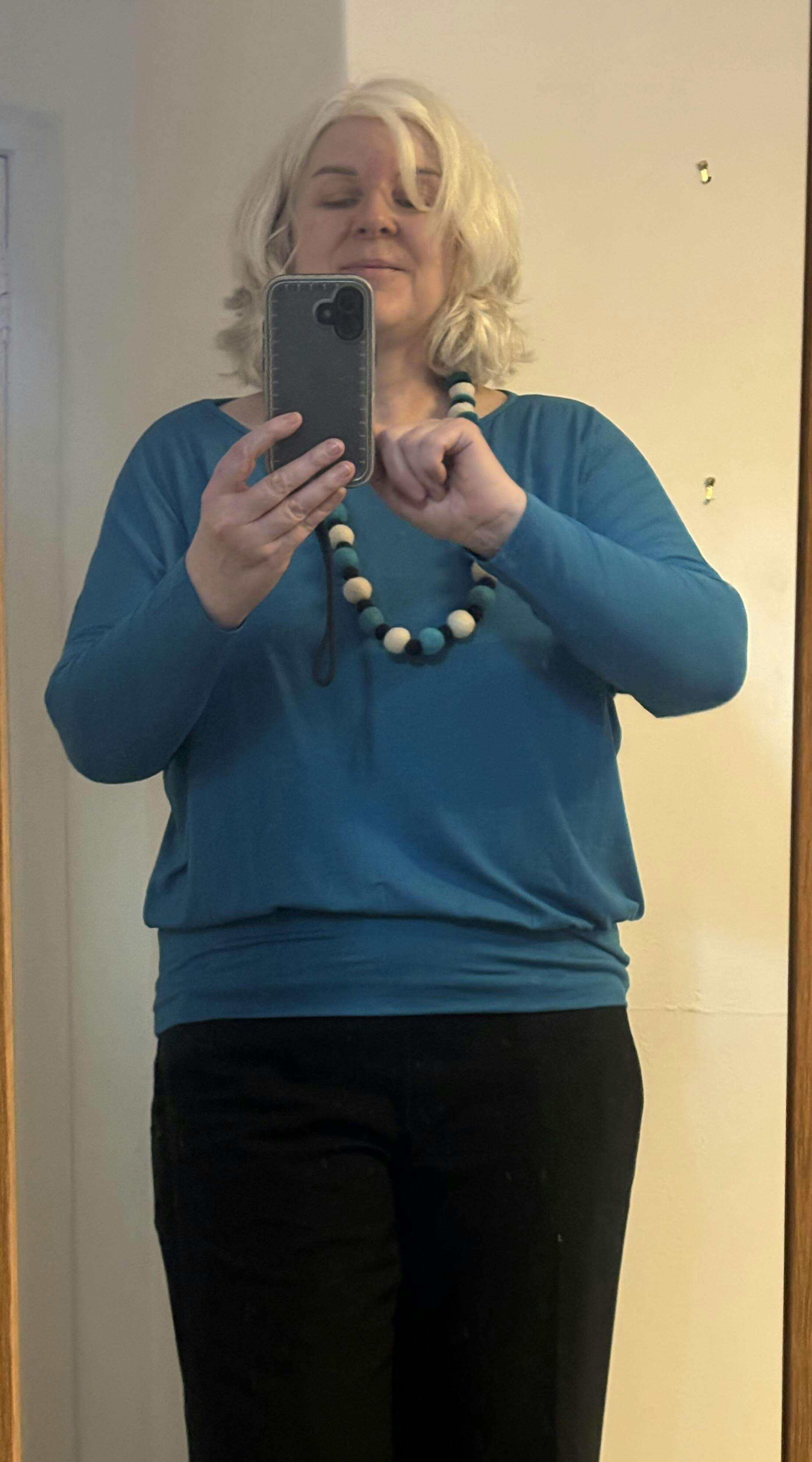 Aimee was the starting point for our curated collection of elevated jersey tops. She’s back in a fresh new limited-edition colourway: crisp white with a soft navy neck trim.